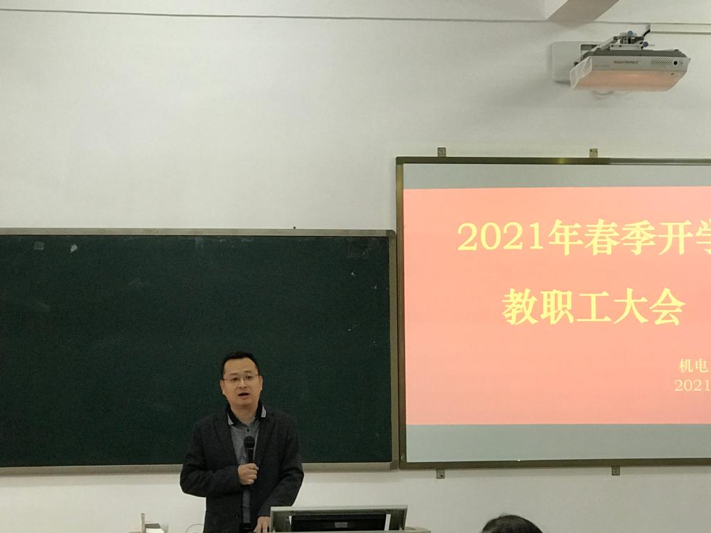 3月1日上午,机电工程学院在实训楼D312召开春季开学教职工大会,赖小景副校长、学院全体教职工参加大会,大会由钟建坤院长主持。