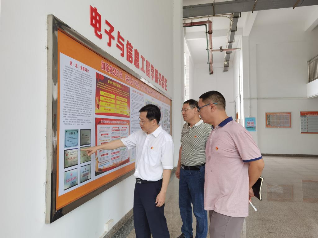 会后,韦书记到电信学院各党支部办公室及专业办公室走访调研。期间,了解了各党支部党务工作开展的情况,指导了学院党总支部的党建“双创”标杆院系建设工作,看望了教工老党员。