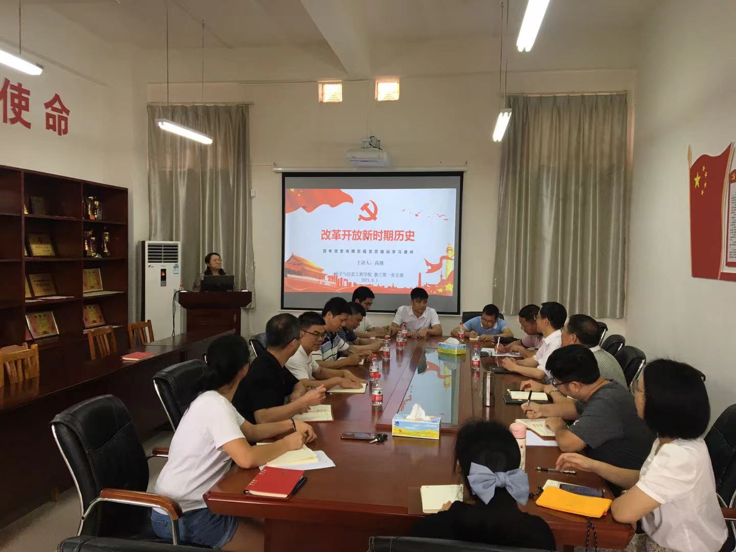 2021年6月1日下午, 电信学院教工第一党支部在学院会议室B307开展主题为《百年党史光辉历程党员培训学习——改革开放新时期历史》的专题党课活动。学校党委书记韦荣,电信学院党总支书记王富宽、副书记徐国辉和该党支部的全体党员参加了党课学习,党课由党支部书记高燕主讲。