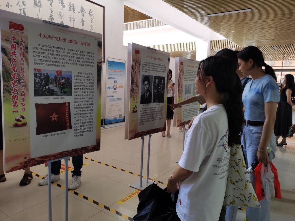 6月15日下午,人文艺术学院全体党员和学生代表在图书馆二楼大厅观看了由广东省社会科学界联合会组织编撰的“中国共产党百年辉煌——马克思主义在广东的百年传播”主题展全省巡展。本次展览向师生们展示了马克思主义在广东的百年传播,按照时间顺序,分为四个时期。