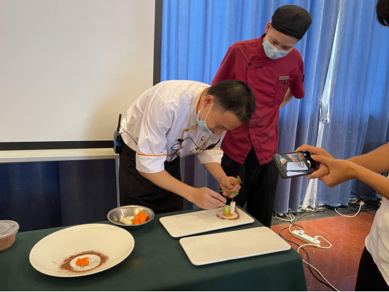 企业导师手把手教学生摆盘