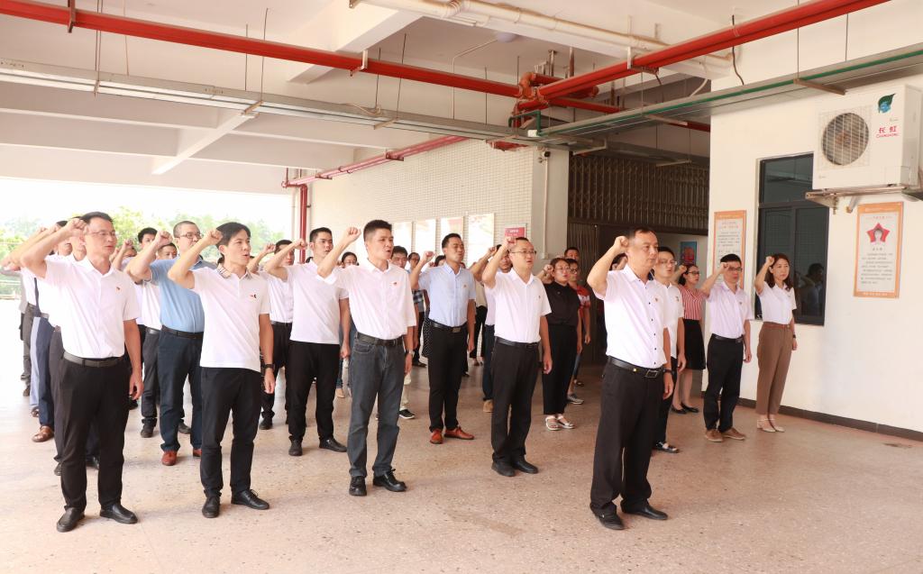 15:00,学院师生党员在机电楼一楼举行重温入党誓词暨“建党100周年海报展”开展仪式。