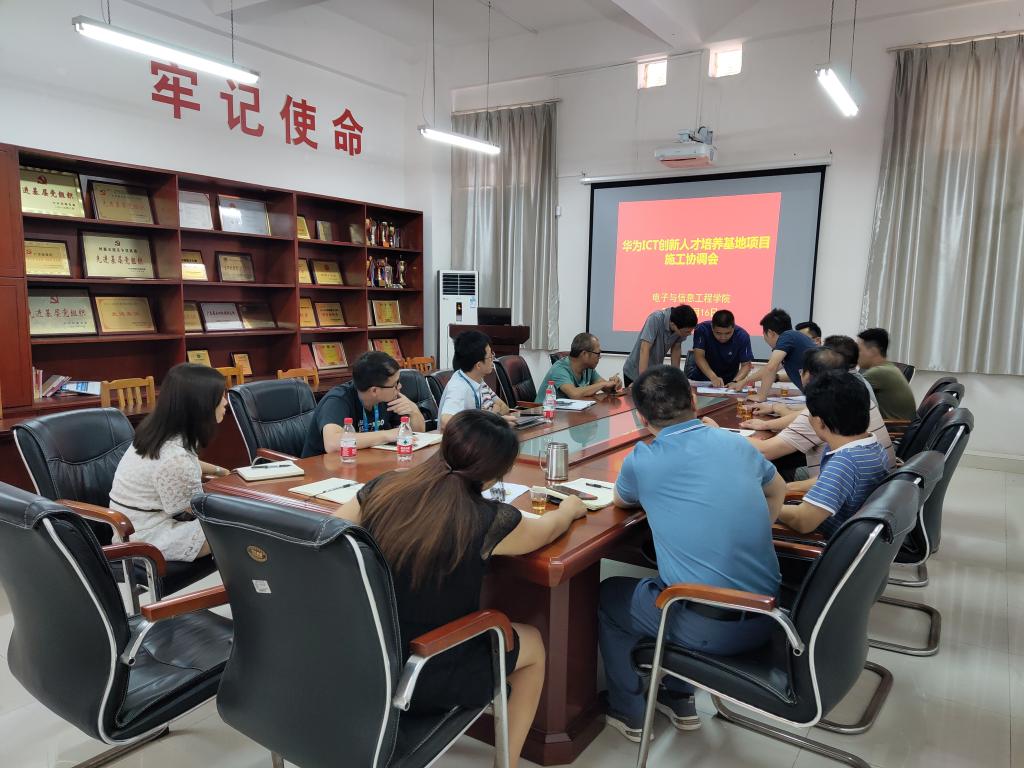 华为ICT创新人才培养基地项目由主体工程和装饰安装工程两个子项目组成,两个子项目均已完成招标,主体项目的中标方是中国移动通信集团广东有限公司河源分公司,装饰与安装工程的中标方是广东港粤建设工程有限公司,装饰安装工程已进场施工一周,主体项目正在签订合同。周永福副院长首先介绍了华为ICT创新人才培养基地项目的基本情况,重点剖析了项目的来龙去脉,阐明了此次协调会的重要意义,项目负责人谢志能老师介绍了项目的具体实施情况。