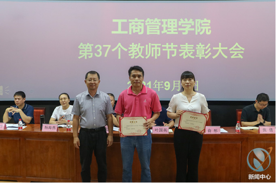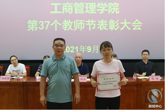 9月7日,工商管理学院在实训三期3D导游模拟实训室隆重召开第37个教师表彰大会。学校党委副书记、纪委书记叶国英,科研处何智聪处长、财务处张倩处长、图书馆杨海燕馆长、监察审计处王俊光副处长以及工商管理学院全体教职工参加表彰大会。