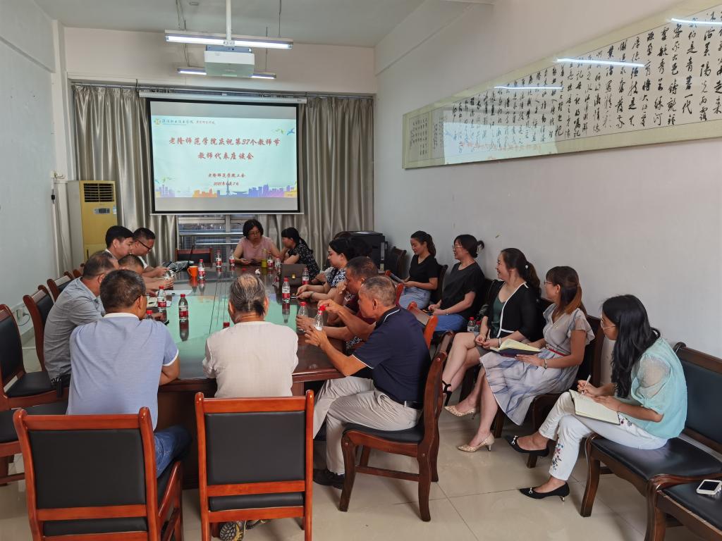 9月7日下午,为庆祝第37个教师节的到来,老隆师范学院在艺术楼A202召开教师代表座谈会,会议由学院党总支副书记谢战锋主持。