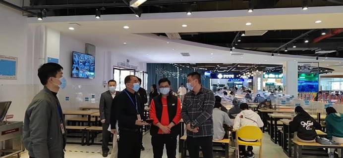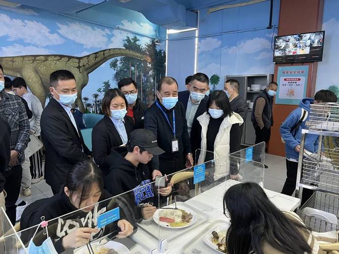 观摩人员先后对食堂智慧餐厅运营流程及原料储存、加工及后厨热菜烹饪等功能区域进行了参观学习,我校后勤负责人介绍了智慧餐厅的运营模式、疫情常态化防控工作、防止食品浪费的经验和后勤管理相关监管制度等内容,与参观人员共同探讨做好食堂供餐保障和食品安全工作的经验和做法。
