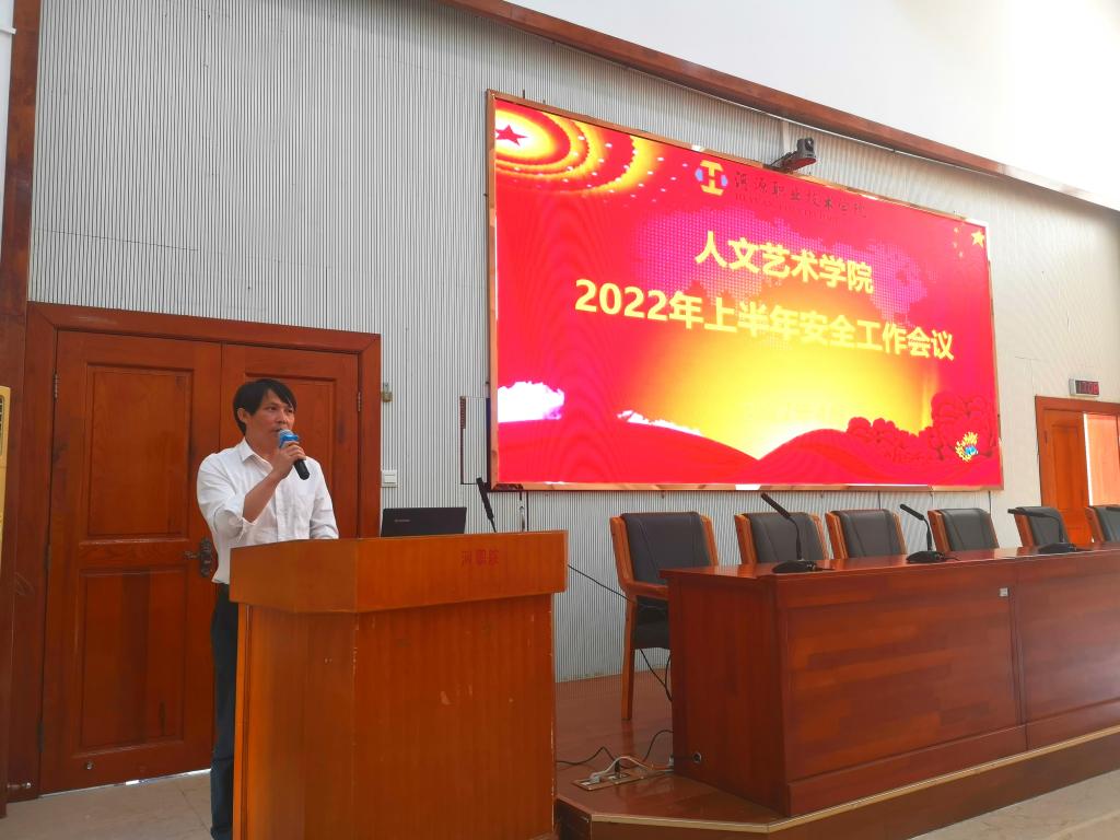 4月13日下午,人文艺术学院在行政楼C108召开了学院安全工作会议,学院全体教职工参加了此次会议。会议围绕疫情防控安全、办公室安全、实训实习安全、实训室安全、学生管理安全等展开。
