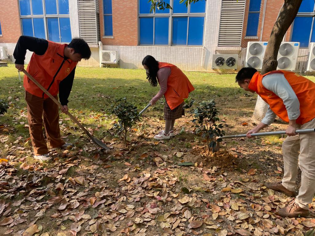 春回大地,万物复苏,又是一年的芳草绿茵,在这春意盎然的日子里,为深入推进绿美广东生态建设,打造美丽幸福河源,进一步 美化校园环境,电信学院学生党支部、团委于三月十日在校园内开展植树节复绿活动,学生支部全体党员及部分志愿者共同参加本次活动。