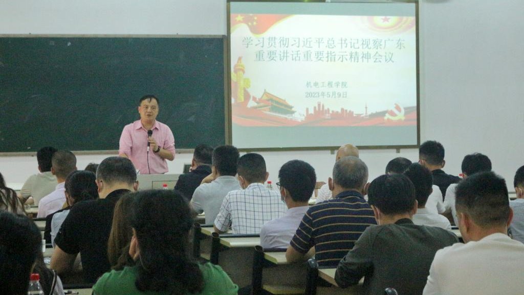 5月9日下午,机电工程学院在实训楼D312召开学习贯彻习近平总书记视察广东重要讲话重要指示精神会议,学校党委副书记叶国英、学院全体教职工参加活动,活动由钟建坤院长主持。