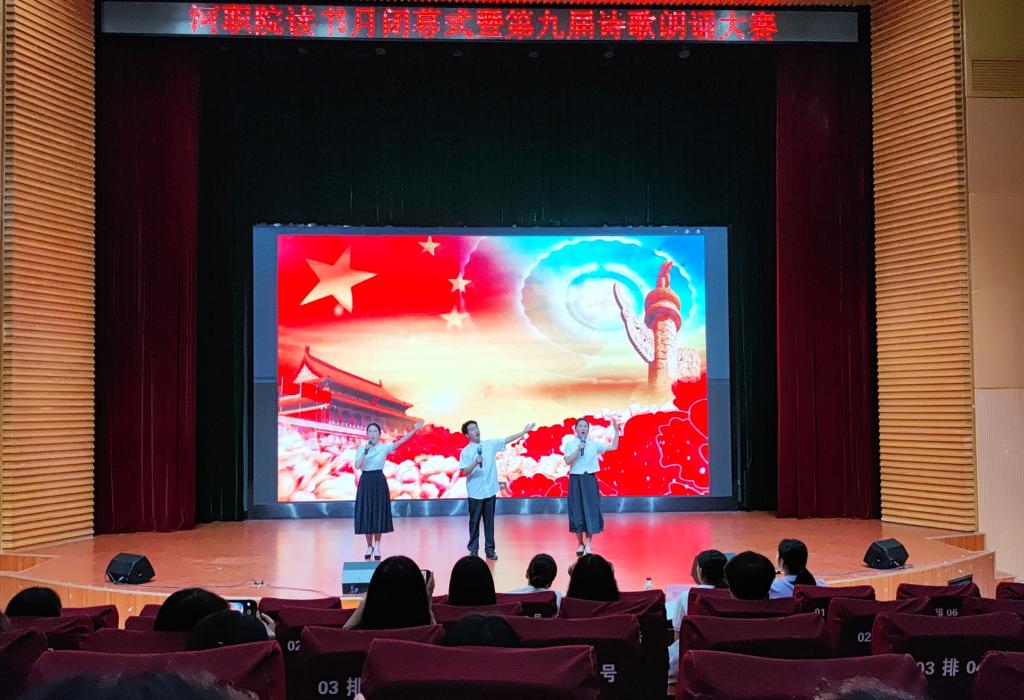 6月21日,我校在图书馆报告厅举行河职院读书月闭幕式暨第九届诗歌朗诵大赛决赛。我校图书馆馆长杨海燕,参赛选手及各学院学生代表等参加此次活动。