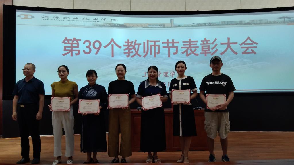 9月7日,工商管理学院在实训三期3D导游模拟实训室召开第39个教师节表彰大会。学院全体教职工参加活动。
