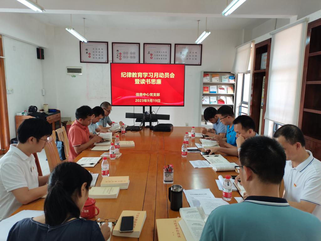 2023年9月19日,信息中心党支部在信息中心会议室召开2023年纪律教育学习月动员会暨读书思廉。会上,首先由孙远强同志领学第一议题学习内容“学习习近平总书记在二十届中央纪委二次全会上的重要讲话精神”。随后,支部书记杨文同志解读《2023年必一手机登录入口开展纪律教育学习月活动的实施方案》,并对支部开展纪律教育学习月活动作出具体的动员部署。读书思廉交流会上,黄科同志领学《习近平著作选读》“发展数字经济,抢占未来发展制高点”,党员同志交流学习心得体会。