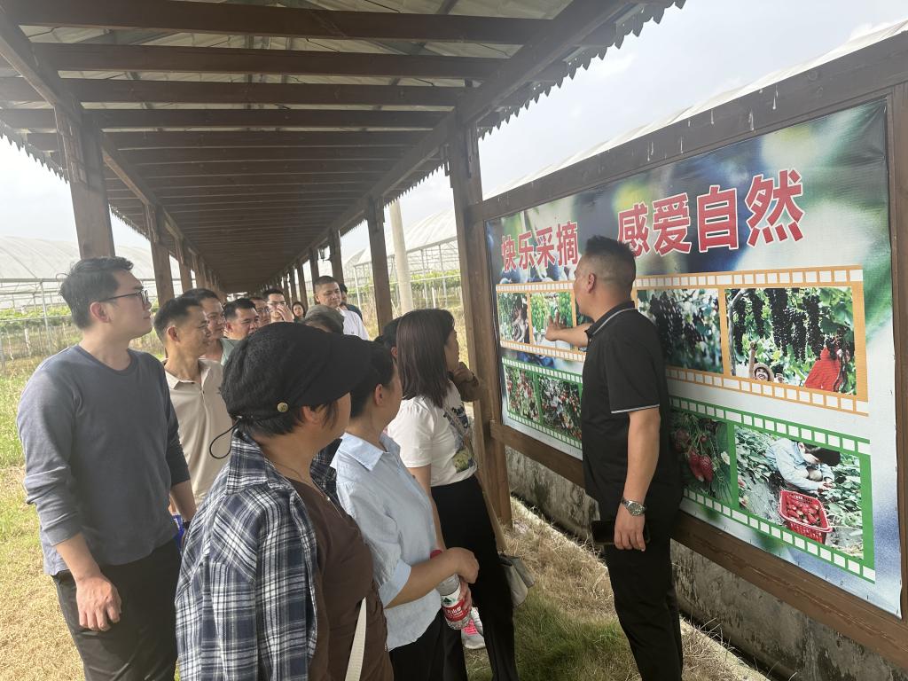 雅色村党总支书记邹观明围绕建设基层党组织、壮大村集体经济收入和打造乡村典型等几个方面进行详细介绍,与参加实践教学的村干部学员进行深入的互动交流。随后村干部学员实地参观了雅色村的基础设施、培训中心和葡萄产业园。