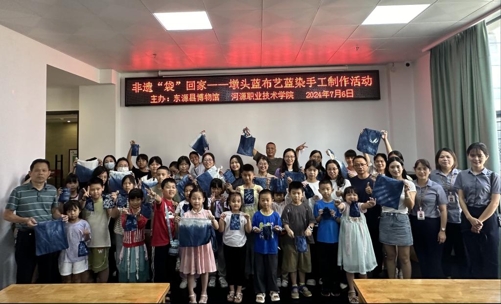 为弘扬客家文化,促进人文社科普及,传承非物质文化遗产,发挥继续教育实践教学基地育人功能,7月6日,我校联合东源县博物馆举办墩头蓝布艺蓝染讲座与实践教学公益活动。