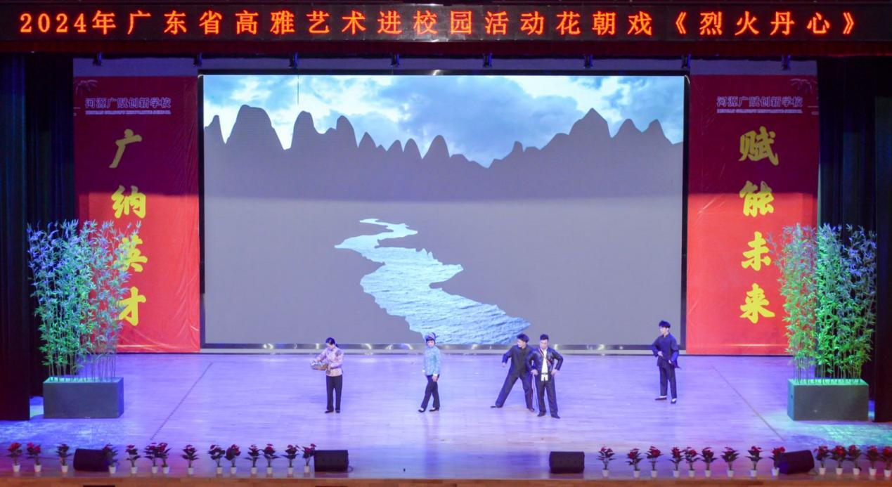 12月17日,由广东省教育厅主办,河源市教育局承办,必一手机登录入口与紫金花朝戏传承发展中心联合承演的2024年广东省高雅艺术进校园活动在河源广附创新学校隆重举行。此次活动为师生们带来了一场精彩绝伦的花朝戏《烈火丹心》展演,赢得了广泛赞誉。