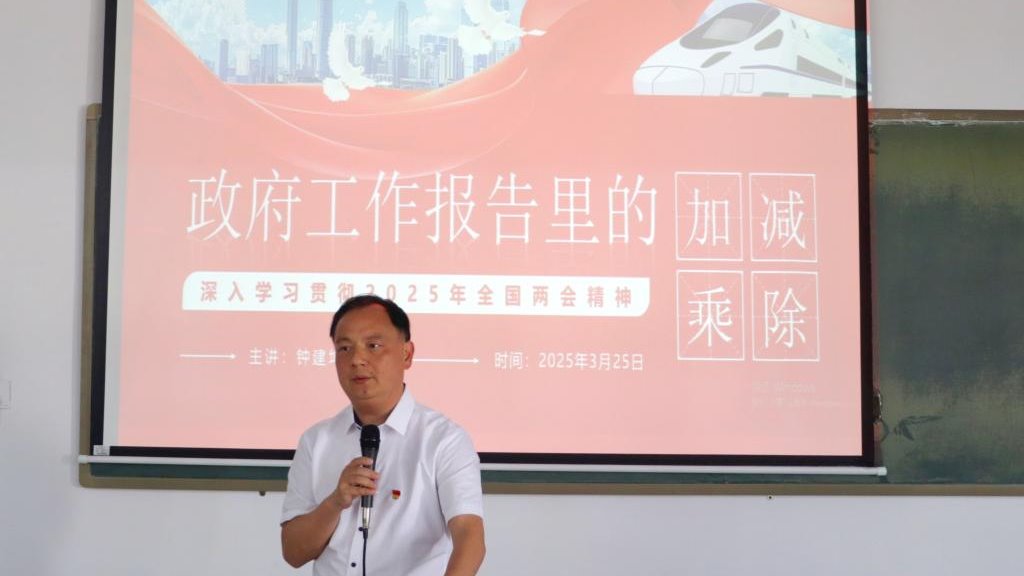 钟建坤书记紧扣两会精神要义,以“加减乘除”四维解析框架深入解读。在“加法”层面,强调以增进民生福祉为导向,为学院工作增添温度与厚度;“减法”聚焦减掉冗余环节,提升工作效能,优化资源配置;“乘法”突出充分释放创新的“乘数效应”,激发学院在教学、科研、人才培养等多方面的创新活力;“除法”旨在破除阻碍学院发展的各类障碍,增强全体教职工对学院发展的信心。结合学校双高建设和“十五五”发展规划编制等重点工作,钟建坤书记提出学院应进一步突出特色,持续提升服务经济社会发展的能力。