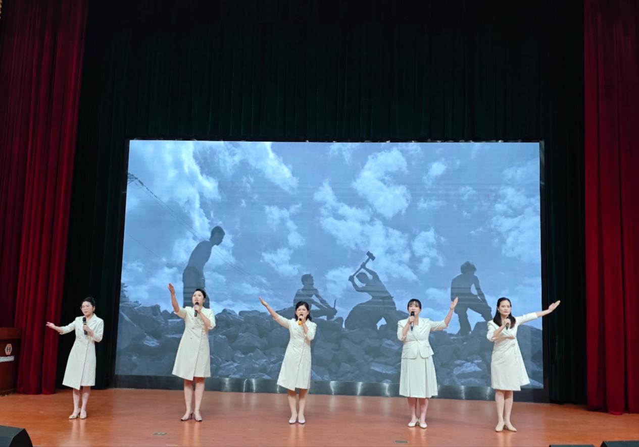活动现场,两校师生以经典诗词为纽带,深度融合文学之美与艺术表达。河源理工学校教师团队带来的《这一双手,那一抹绿》讲述环保工作者守护绿水青山的故事。通过朗诵艺术唤起公众对生态保护的关注与责任担当。郑培荣、吴思琪带来的作品《我们的青春》,以对话形式实现跨越75 年的时空对话,展现新时代的发展成就与青年精神的传承延续。河源理工学校学生团队《赤子丹心阮啸仙》创新采用话剧片段与朗诵结合的形式,生动再现阮啸仙为理想信念奋斗的一生,让在场师生进一步坚定了传承红色基因、赓续红色血脉的决心。最后,河职院周艳妮老师以一曲《三月桃花心中开》为活动画上圆满句号。歌声中饱含对革命先烈的敬仰和对革命精神的礼赞以及对和平美好生活的珍惜之情。