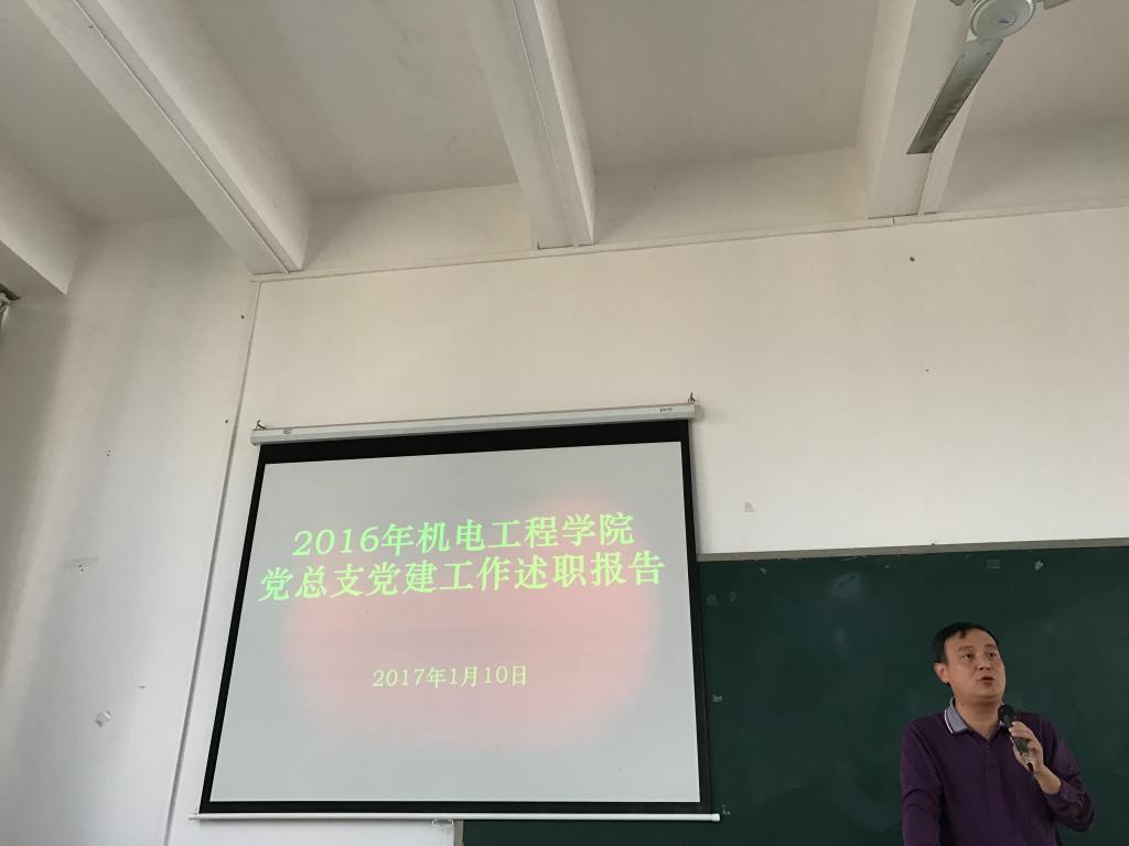 1月10日下午,机电学院党总支在实训楼B306举行2016年机电学院党总支党建工作述职报告,学院党总支全体党员出席了此次会议,会议由党总支书记钟建坤主持。