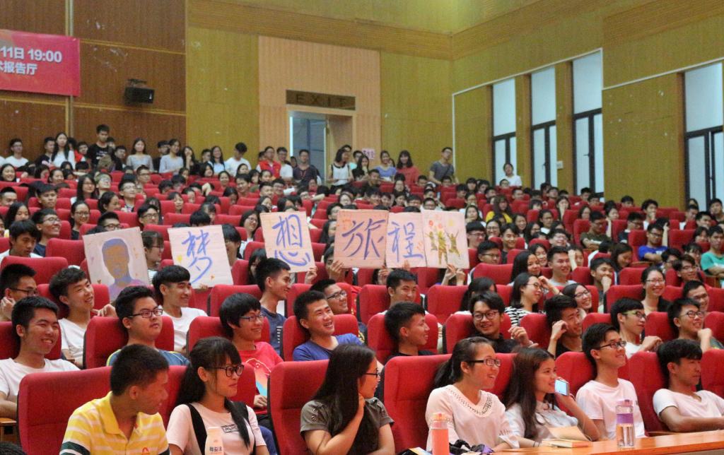 随后,王晟老师以幽默诙谐的语言讲述自己的成长经历和人生际遇,通过自己在生活上、学习上以及工作上的切身感受激励同学们奋发学习。他表示,在学习中,要有屡战屡败、屡败屡战的精神,梦想不是有就可以实现的,而是需要用更多的经历和努力奋斗去一步一步地实现的。最后,王晟老师鼓励大家:要与优秀的人同行,与优秀的人一起努力,实现自己的梦想。此次新东方“梦想之旅”讲座在热烈的掌声中取得了圆满结束。