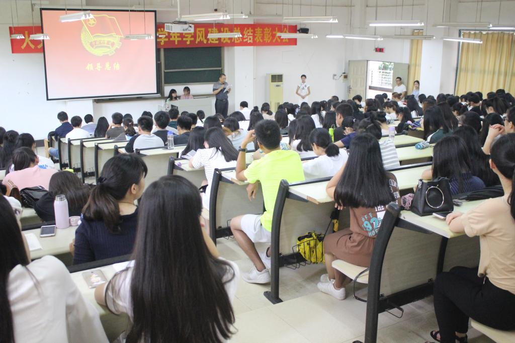 会议伊始,谢战锋副院长上台发表讲话,他全面总结了过去一个学年学风建设所取得的主要成果,分析了目前学风建设中存在的主要问题,对未来学风建设提出了目标任务。随后,学生代表15级数学教育专业1班吴江华上台发言,他认为开展学风建设活动和文明修身活动有助于大学生树立和培养良好的学习风气,鼓励在场学子响应学院号召,从自身做起,在学习和考试过程中自我监督,用实际行动促成校园良好学习风气的形成。紧接着,来自文秘专业的教师代表袁思强老师分享了学习经验,指出同学们可以通过找准学习目标,转变思维方式和参与各种实践的方式,在大学生活中鞭策自己不断学习,不断成长,努力争当一名优秀的大学生。最后,大会表彰了120个“优秀学风个人”、30个“优秀学风宿舍”和6个“优秀学风班”,以此鼓励在过去一年内在学风建设中表现突出的集体和个人。