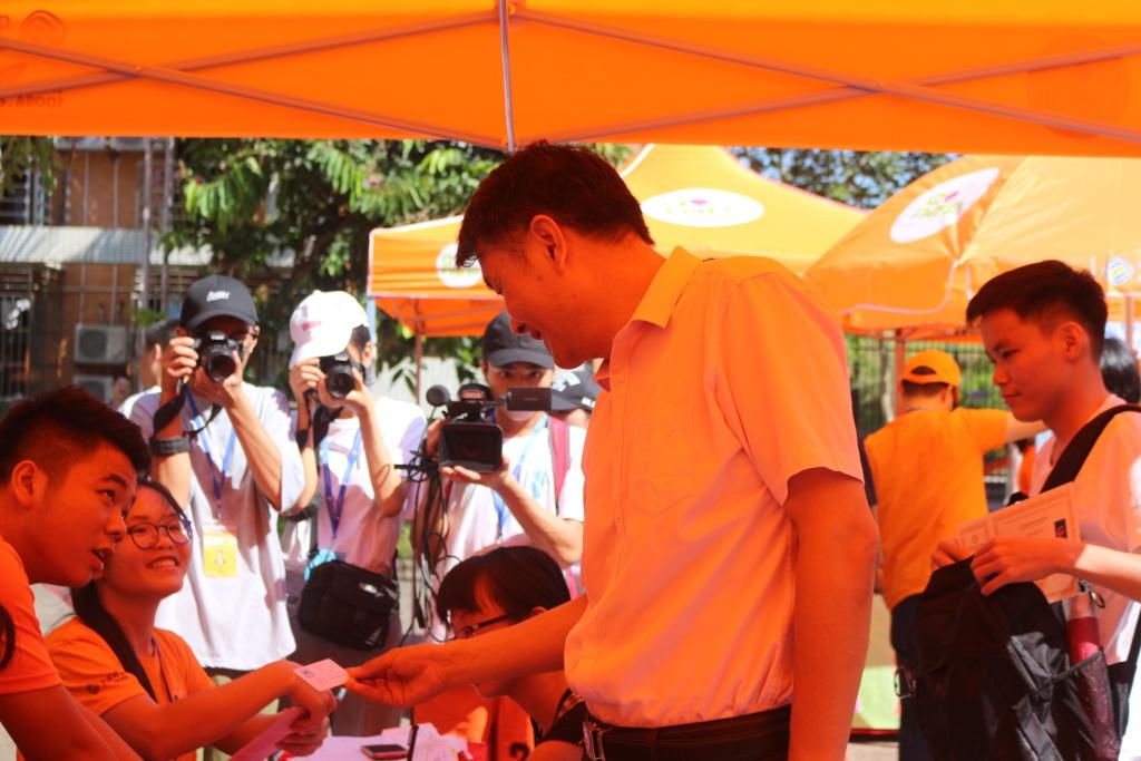 陈德清校长等领导逐一走访了机电学院大本营的各个站点,向接待新生报到的师生们表示慰问,仔细询问了迎新进展的情况,与新生家长亲切交谈,并对志愿者们的热情和细心表示赞扬。