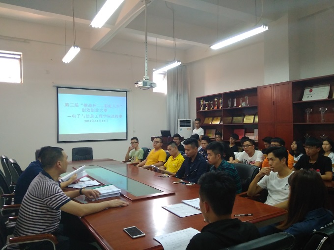 2017年11月17日,“挑战杯——彩虹人生”创业大赛—电信学院选拔赛在学院会议室顺利举行。出席活动的人员有电信学院副院长周永福、团总支书记杨日奎及24部作品的参赛选手,活动由杨日奎主持。