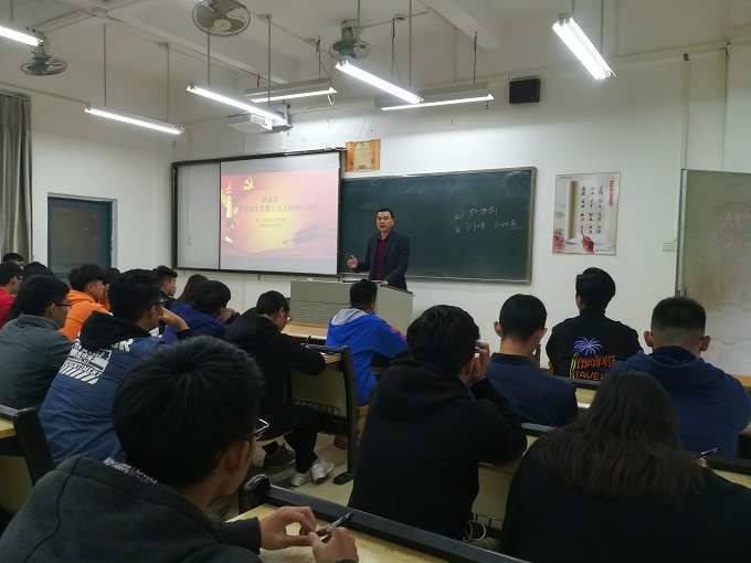 2017年12月12日,我院在教学楼A313召开团总支学习宣传贯彻党的十九大精神交流会。参加人员有16级学生会代表、各专业班长以及团支书,由团总支书记杨日奎老师主持会议。