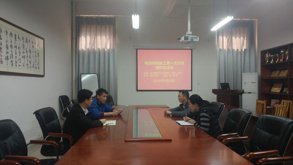 2018年1月19日,电信学院教工第一党支部在学院会议室召开主题为:学习贯彻党的十九大精神,严肃“四风”,筑牢“四个意识”,坚定“四个自信”的组织生活会,杨黎院长以普通党员身份参加会议。