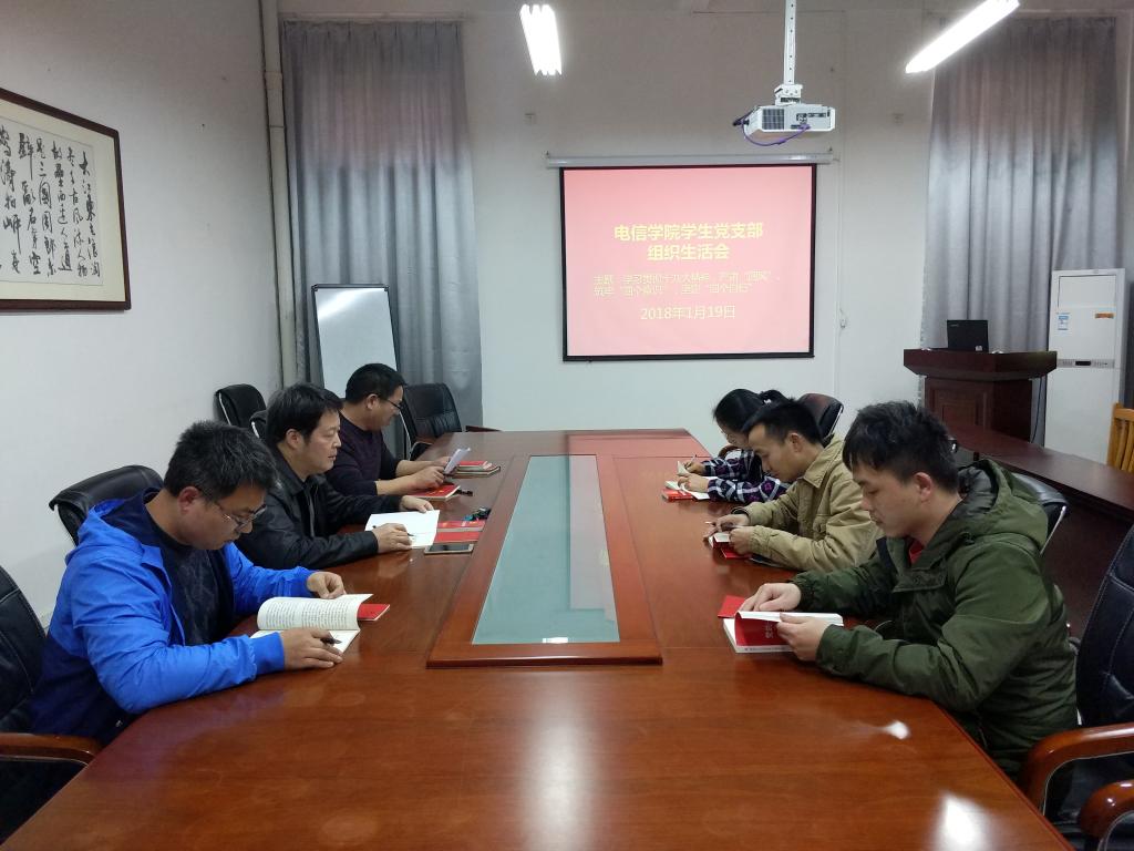 1月19日,电信学院学生党支部组织生活会在学院会议室召开,陈农心副校长以普通党员身份参加会议。