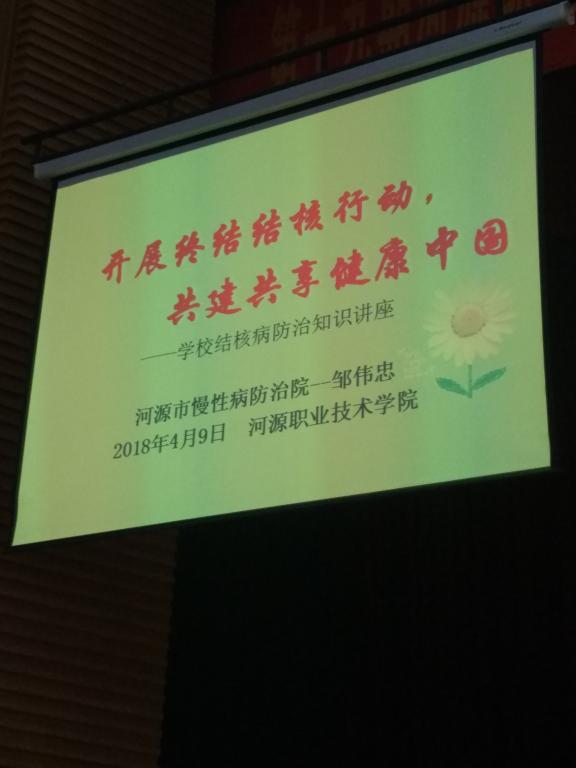 为加强我校结核病防控工作,2018年4月9日下午3点,我校资产后勤处邀请河源市慢性病防治院邹伟忠副主任医师,在我校学术报告厅开设结核病防治知识讲座。