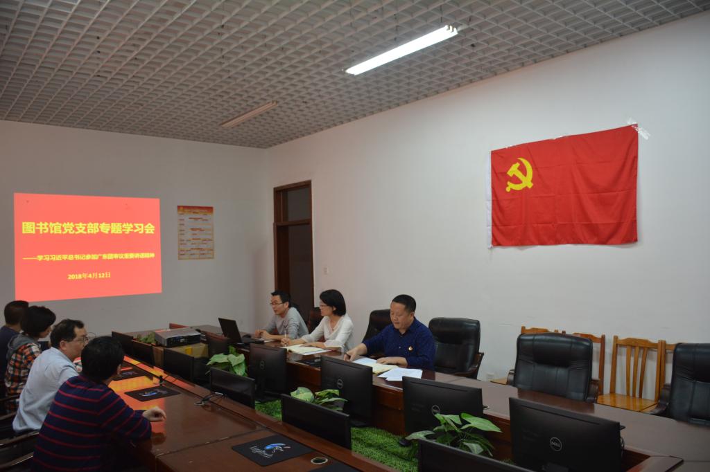 4月12日下午,图书馆党支部召开专题学习会,图书馆馆长、党支部书记赖新优带领大家学习了习近平总书记参加广东团审议重要讲话精神。