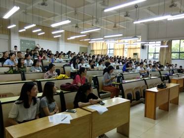 潘教授首先介绍中国古代艺术创作的“起承转合”方法和亚里士多德的“三段论”(syllogism),然后和同学们共同探讨这种写作手法如何运用在古文“念奴娇.赤壁怀古”“奥巴马就职演说”和“雪夜林边小驻”(Stopping by Woods on a Snowy Evening)。然后介绍了文章结构的惯用套路,通过大量丰富的写作案例帮助同学们熟悉文章段落的基本结构,最后重点介绍了Email, memo,和business report中的常用格式和写作方法。潘教授的讲授生动诙谐、深入浅出,讲座同时还设有问答环节,同学们积极回答问题,现场气氛活泼和谐。