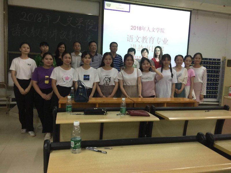 2018年6月26日晚上,人文学院语文教育专业在教学楼C201举行了“讲故事”比赛,本次比赛邀请了朱玉梅、李莉等专业老师担任评委工作,出席本次比赛的嘉宾有李日新、郑尔君、黄志基、骆宇颖等老师。