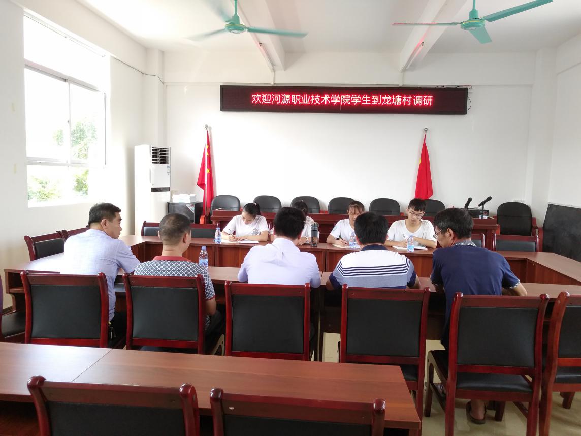 调研活动开始前,紫金县九和镇龙塘村蔡书记、温科长、张主任、村干部委员给全体调研队员介绍了龙塘村的基本概况及2016-2018年精准扶贫工作规划以及“1+6+N”模式等。会上温科长认真回答了调研队员的提问。